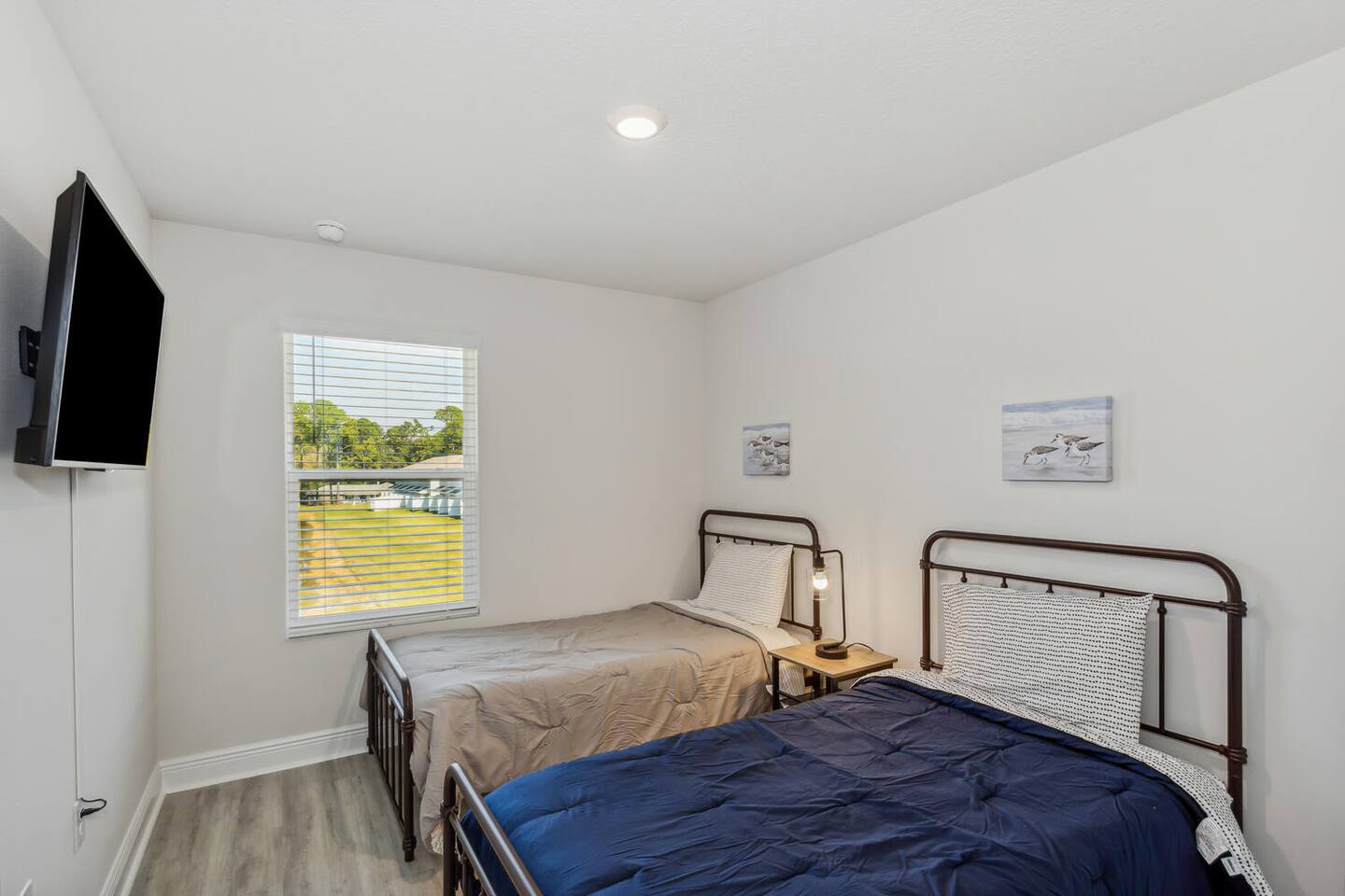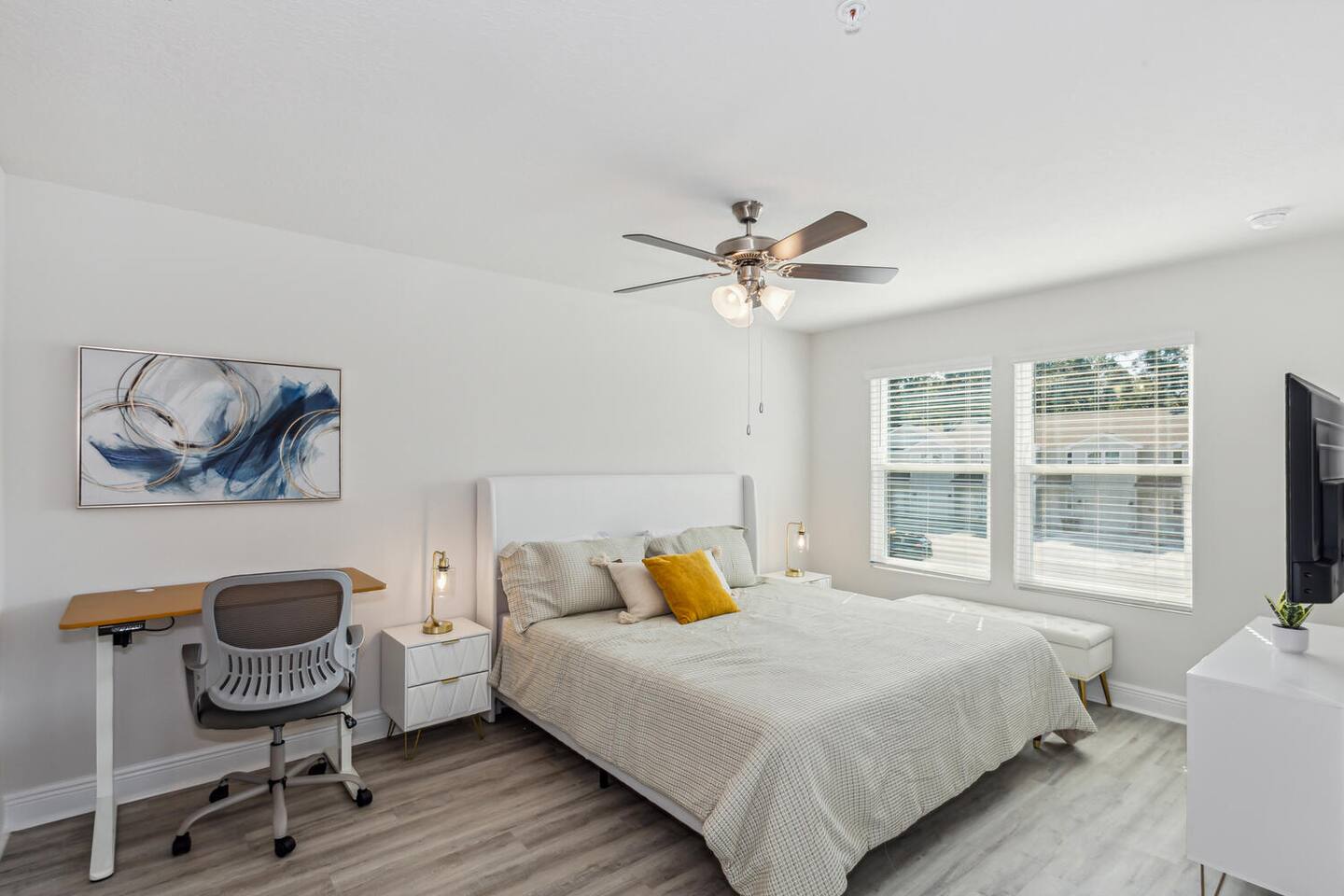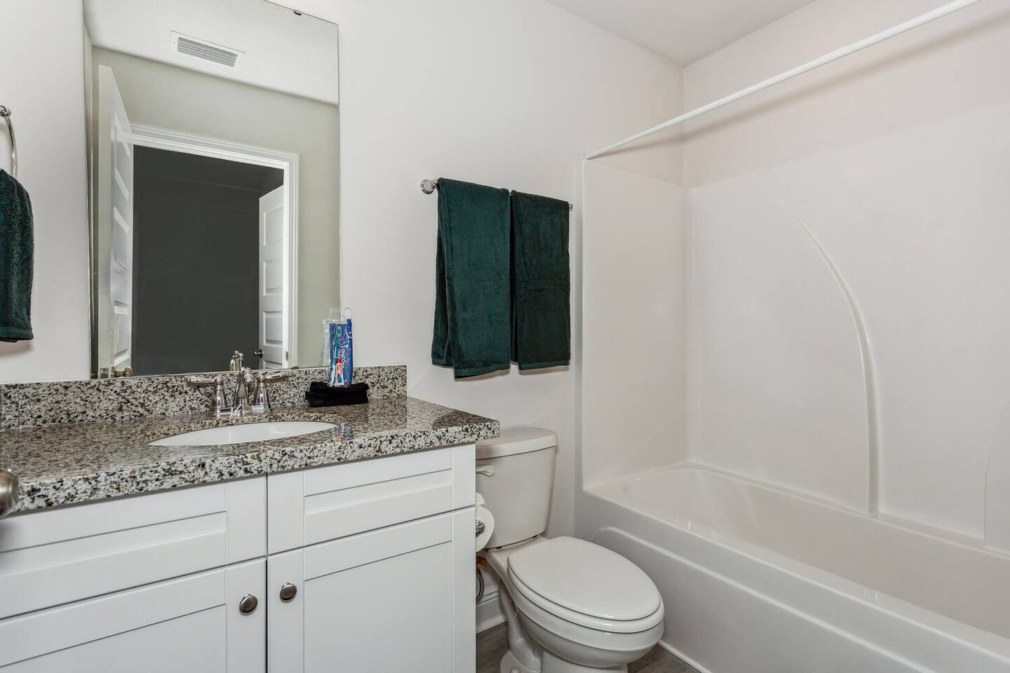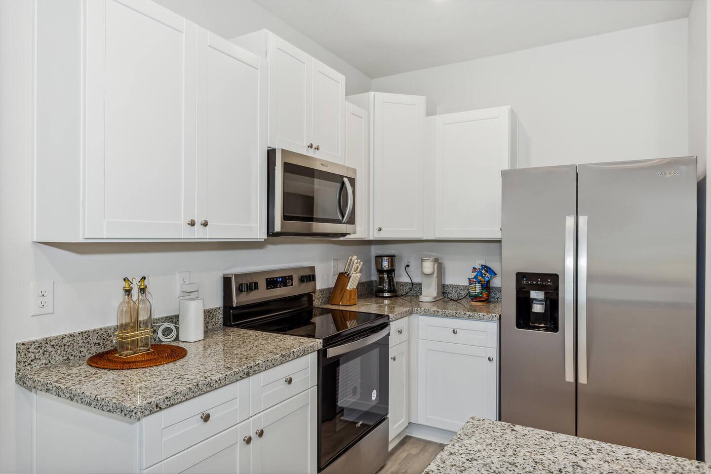 Welcome to your modern escape in Pensacola! This cozy 3-bedroom townhome combines comfort with a sleek, modern style—perfect for family vacations or group getaways. Inside, you’ll find a spacious, open-concept layout featuring a modern kitchen with granite countertops, a dining area, and a comfortable living room—ideal for gathering, cooking, and relaxing. The master suite is a true retreat with a king bed, double vanity, walk-in closet, and an adjustable-height desk for remote work convenience. The second bedroom offers a queen bed, while the third is perfect for kids or friends with two twin beds; these two rooms share a full bathroom, making it easy for everyone to refresh and recharge. For added convenience, there's an in-unit laundry with a washer and dryer—perfect for longer stays. Step out back to a private yard that opens to a serene wooded area and a peaceful pond, perfect for morning coffee or evening unwinding. Located in a friendly neighborhood with private parking, you’re just minutes away from all the best Pensacola has to offer. Book your stay and enjoy the perfect blend of comfort and modern style!